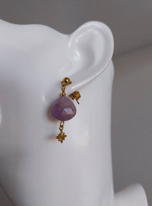✨ Boucles d'oreilles "Les Jolies Pierres" Améthyste et étoiles polaires ✨