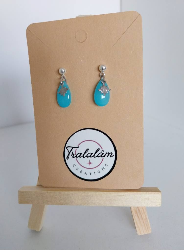 ✨ Boucles d’oreilles minimaliste Goutte Bleu Lagon étoile argentée ✨