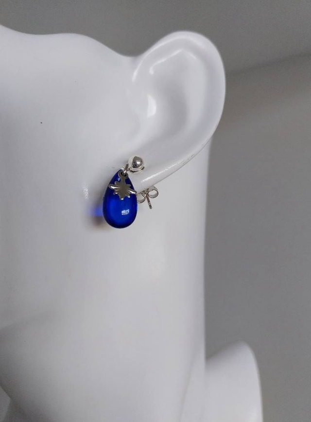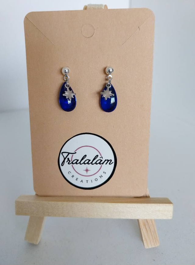 ✨ Boucles d’oreilles minimaliste Goutte Bleu Roi étoile argentée ✨