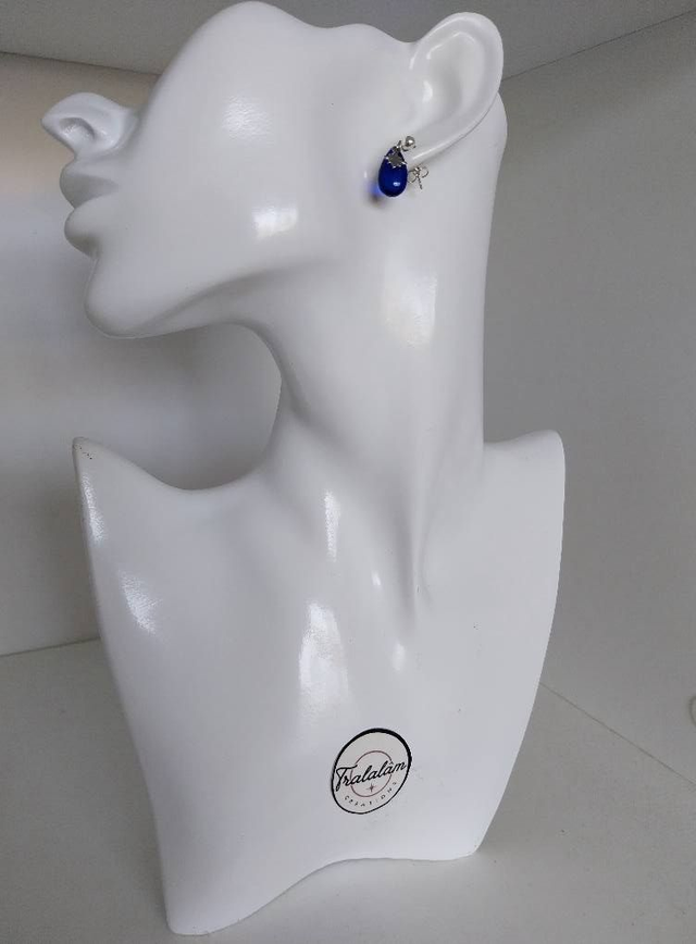 Élégantes et raffinées, ces boucles (environ 2 cm) se composent d’une goutte bleu roi intense rehaussée d’un motif argenté étoilé. Un bijou qui allie profondeur et éclat pour illuminer toutes vos tenues.
