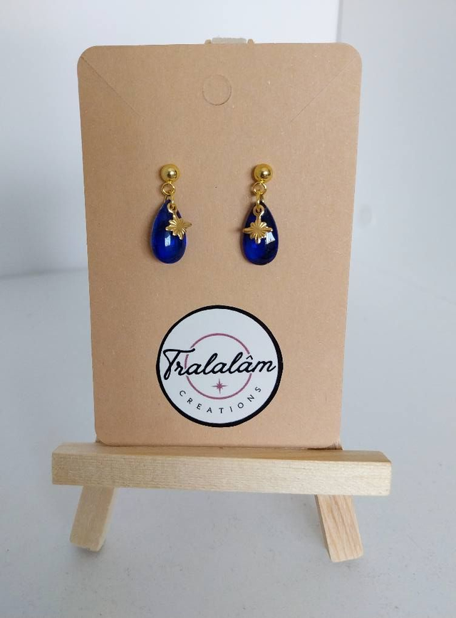 ✨ Boucles d’oreilles minimaliste Goutte Bleu Roi étoile dorée ✨
