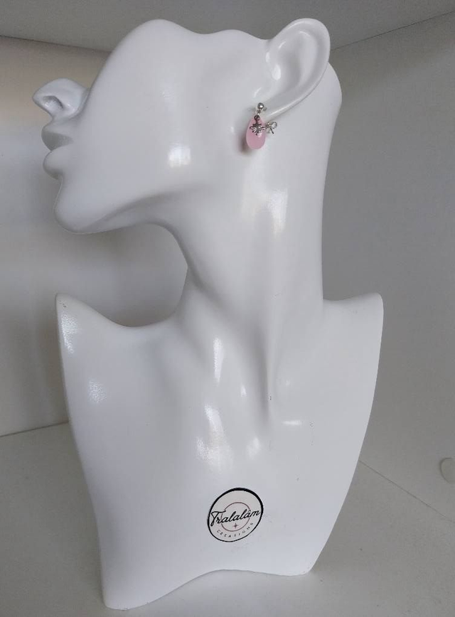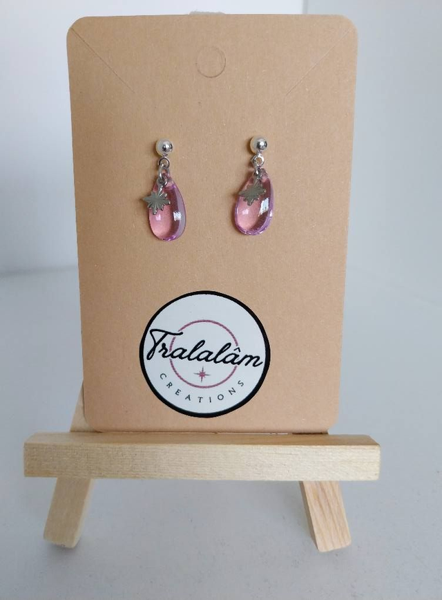 Tout en légèreté (2 cm), ces boucles associent la transparence délicate d’une goutte rose cristal à l’éclat d’un motif argenté étoilé. Une touche subtile et féminine qui capte joliment la lumière.