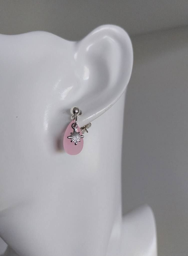 ✨ Boucles d’oreilles minimaliste Goutte Rose Cristal étoile argentée ✨