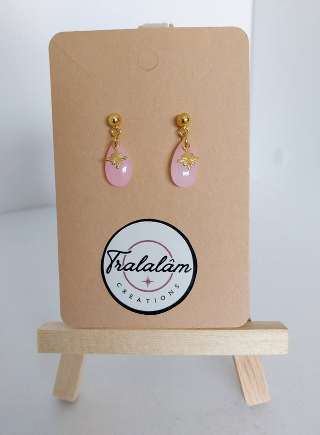 ✨ Boucles d’oreilles minimaliste Goutte Rose Poudré étoile dorée ✨