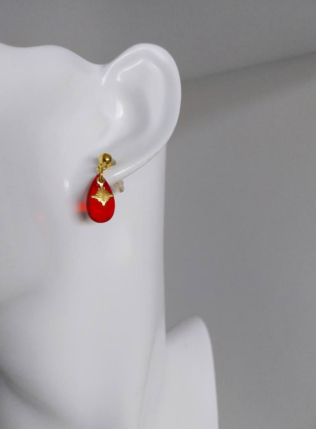 Tout en finesse (2 cm), ces boucles audacieuses marient une goutte rouge éclatante à un délicat motif doré étoilé. Un contraste vibrant pour sublimer votre féminité avec élégance.