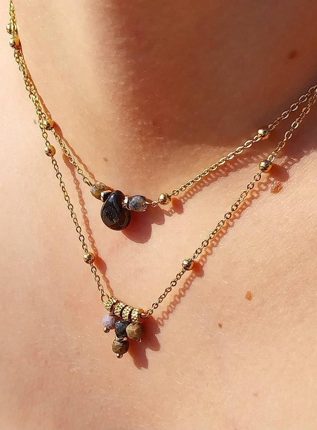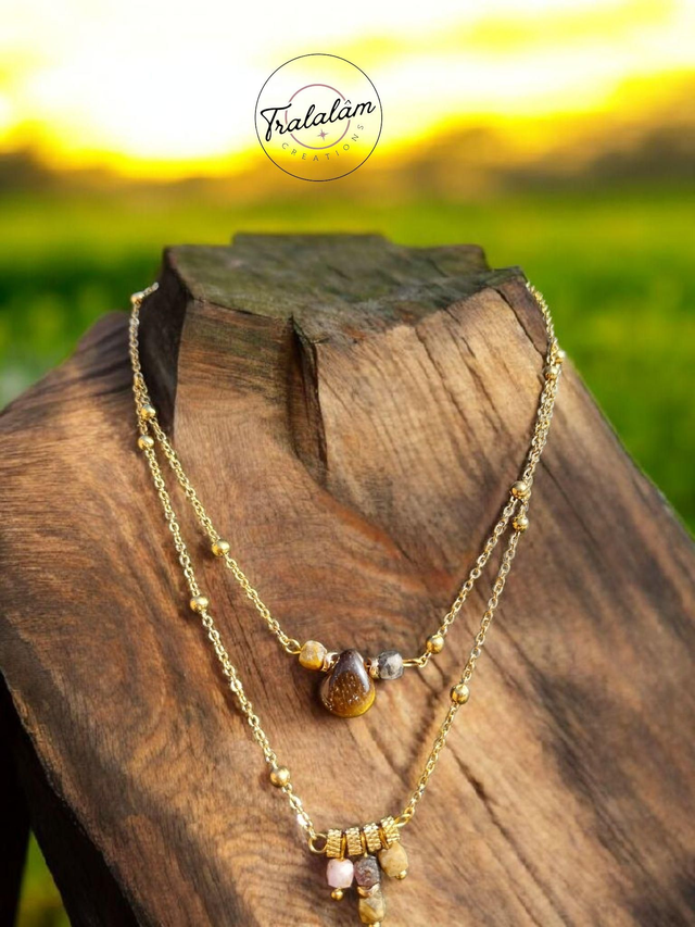 Son effet double rangs crée une belle harmonie de couleurs et un look tendance sans avoir à superposer plusieurs colliers.