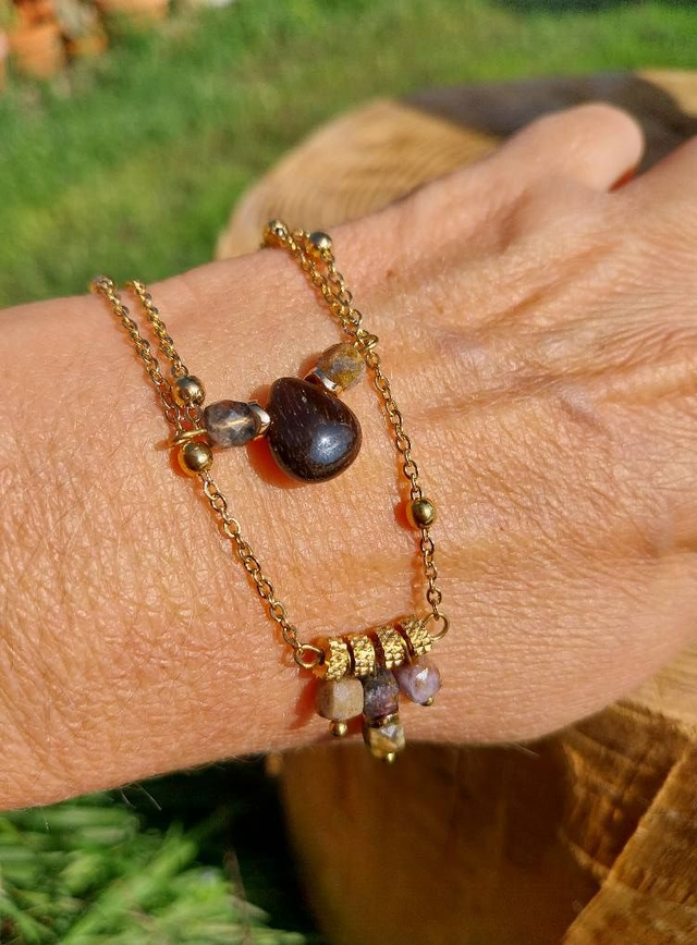 ✨Collier 2 en 1 doré goutte oeil de tigre et perles améthyste ✨